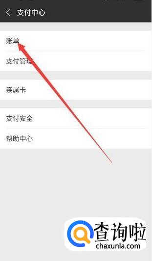 进入支付中心页面,点击“账单”