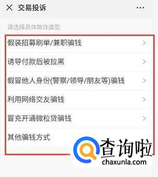 在交易投诉页面,点击具体的投诉类型。