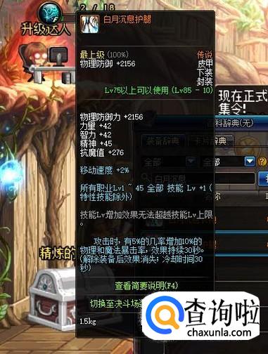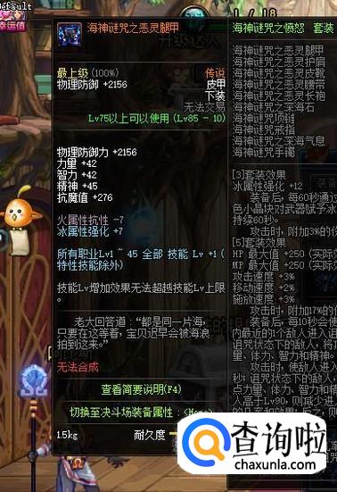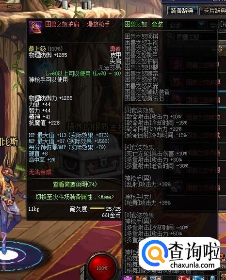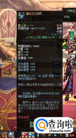 头肩部位可以选择85级SS板甲“魔战无双肩甲”,可以提升2级的BUFF等级,但是其只能通过在深渊派对中概率获得。