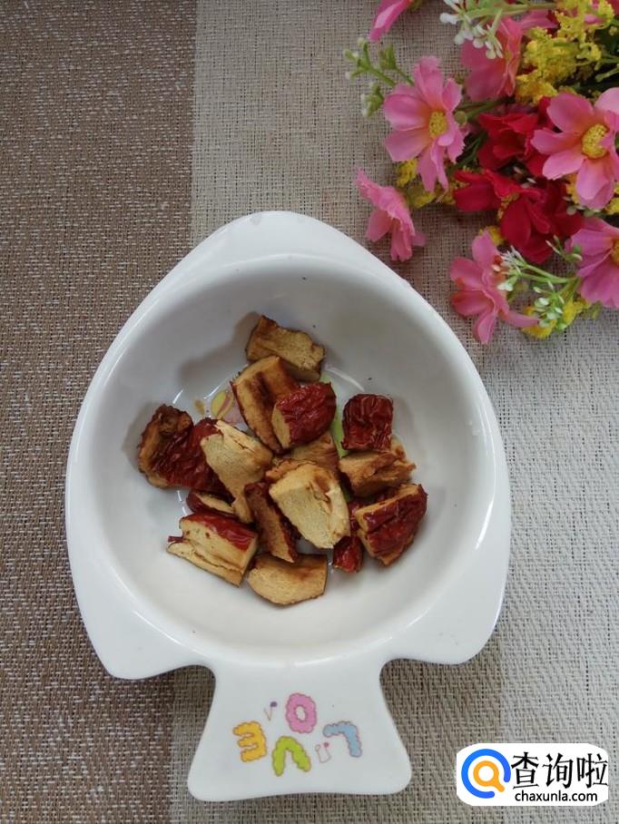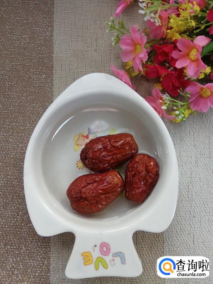 准备适量大枣,用清水泡15分钟,将枣核去掉,用刀把果肉切碎;再准备适量枸杞子和葡萄干,用清水泡一下。