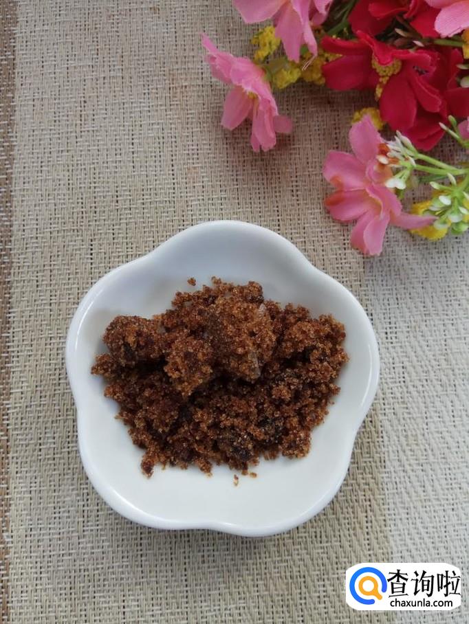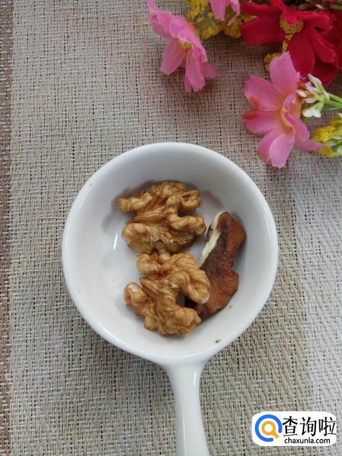 准备一个核桃,去除外皮,取出核桃仁,这里选用的是没有经过加工的核桃仁,功效更好;再准备适量红糖,红糖有温中散寒的功效。