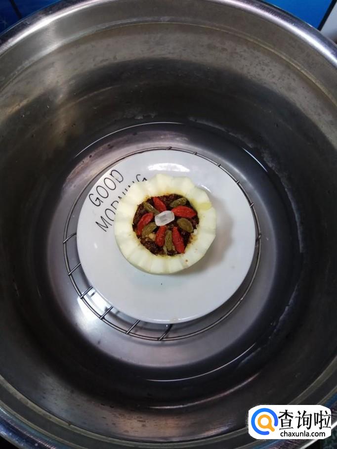 锅中烧开水,将做好的笋瓜甜酿放上蒸锅,盖上锅盖,水开后转小火,蒸30分钟左右,彻底蒸透。