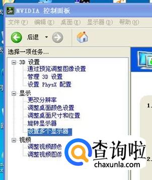 在NVIDIA控制面板里点击左边的“设置多个显示器”。