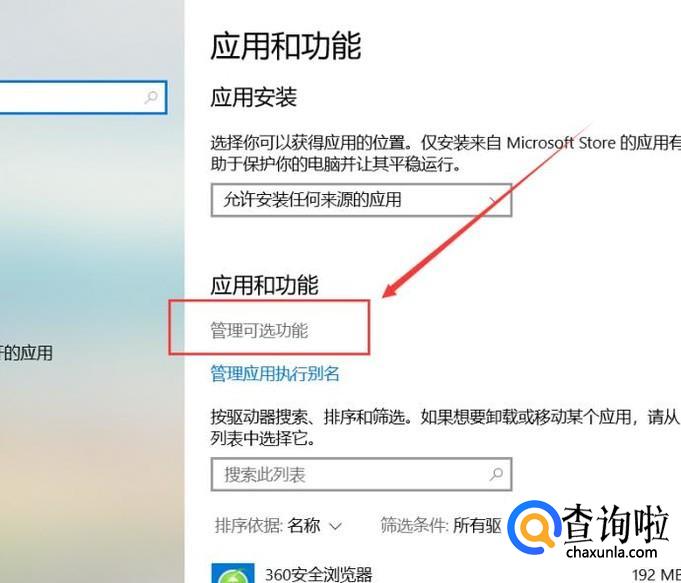 进入系统应用页面之后,点击“管理可选功能”按钮。