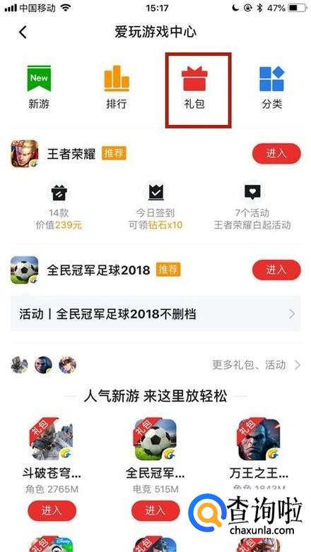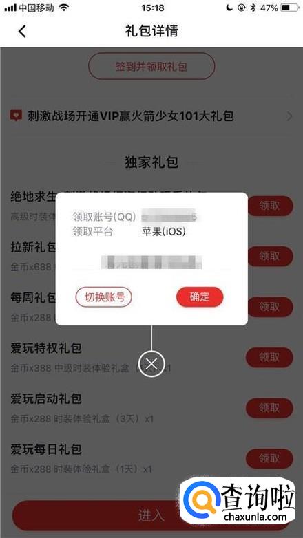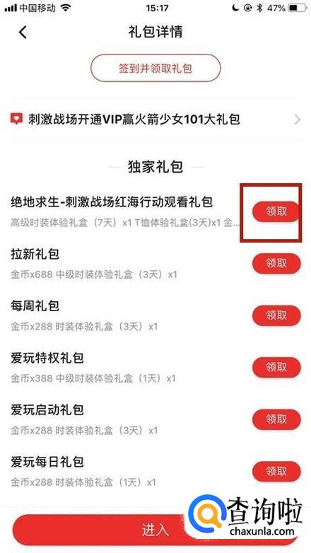 然后点击我们想要领取的礼包右侧的领取,如下图所示。