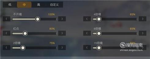 接着,就是开火镜头下的灵敏度设置,这里与上面的设置差不多,不过要适当降低灵敏度,因为子弹是有弹道的。