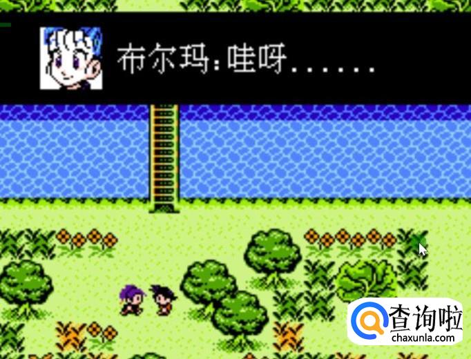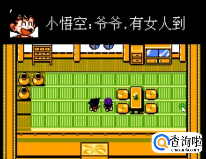 游戏开始,小悟空走出房间抓鱼,在回去的路上,遇到了布尔玛,这里我们跳过。