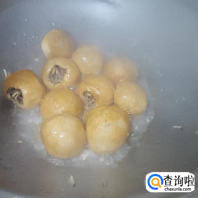 倒入塞好的油面筋,加入少量胡酱油,加入温水高过于油面筋