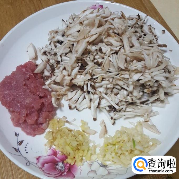 番薯粉丝用开水泡5分钟,肉切丁,香菇切切丁,姜蒜切成末