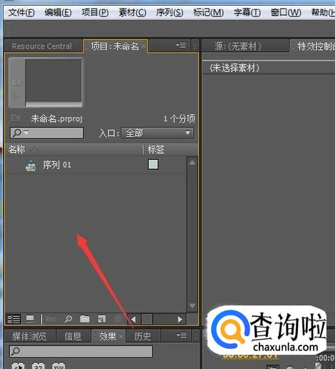 在Pr的左下角点击效果选项,在列表框中找到视频特效,点击扩展目录。