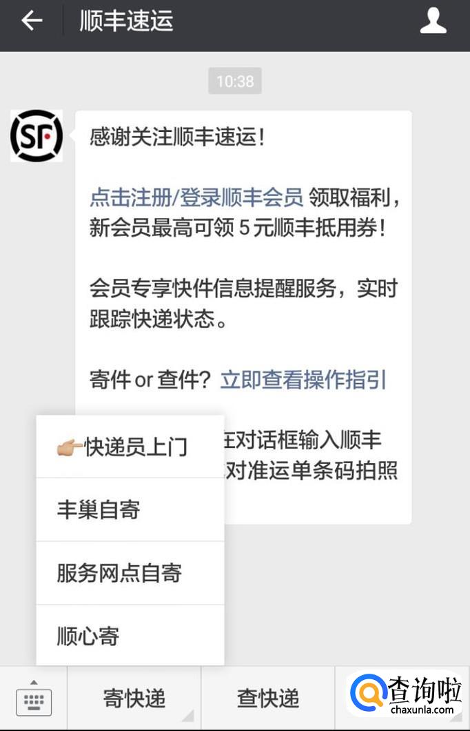 打开顺丰快递的公众号,底栏有“寄快递”的选项,点击一下。