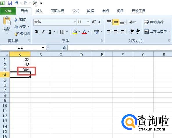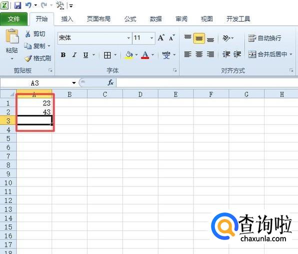 之后我们输入两个数字,然后我们点击选中图示中的单元格;