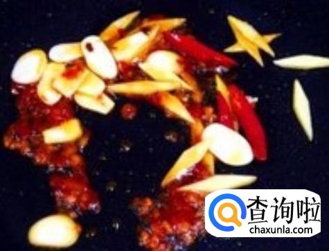 热锅下油,放姜片、蒜米、小米辣进去爆香。