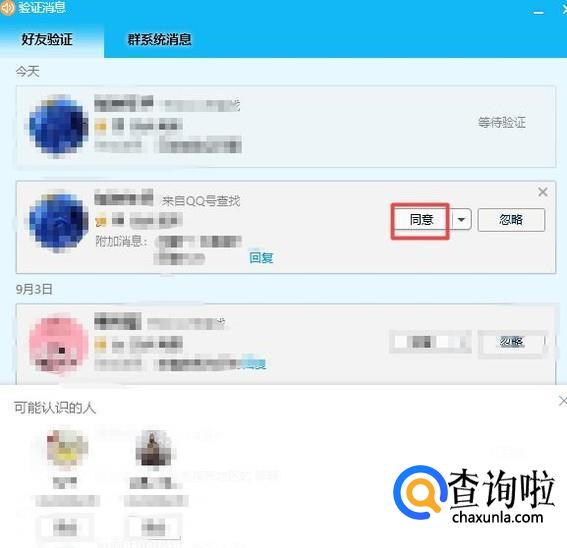 然后我们自己会收到一条验证信息,我们双击打开,之后我们点击同意;