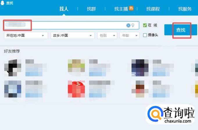 弹出的界面,我们输入我们自己的QQ账号,然后点击查找;