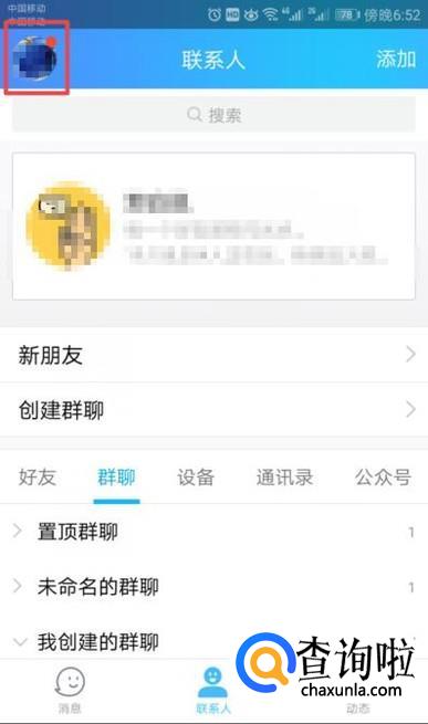 进入QQ后,我们点击左上角的QQ头像;