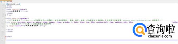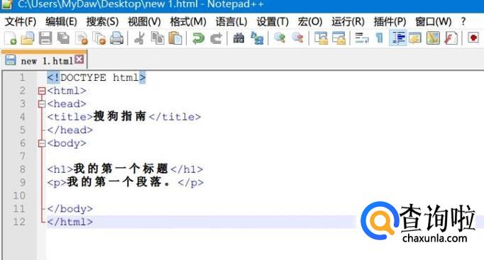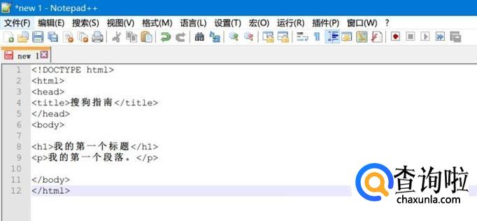 接下来就开始编辑我们想要实现的内容,需要把代码编辑在<body>的标签中间。<h1>是标题标签,<p>是段落标签。