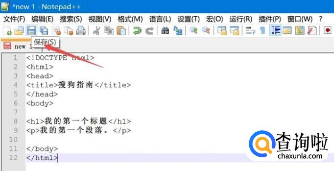 把我们刚刚编辑好的代码保存一下,Ctrl+s,或者点击软件上面的保存图标。