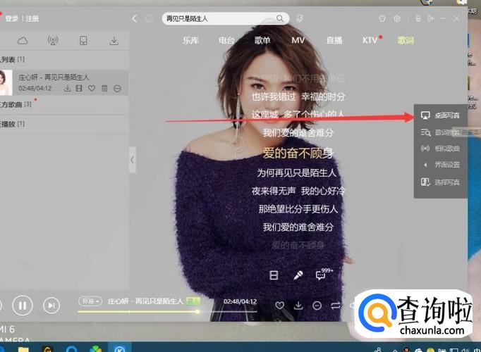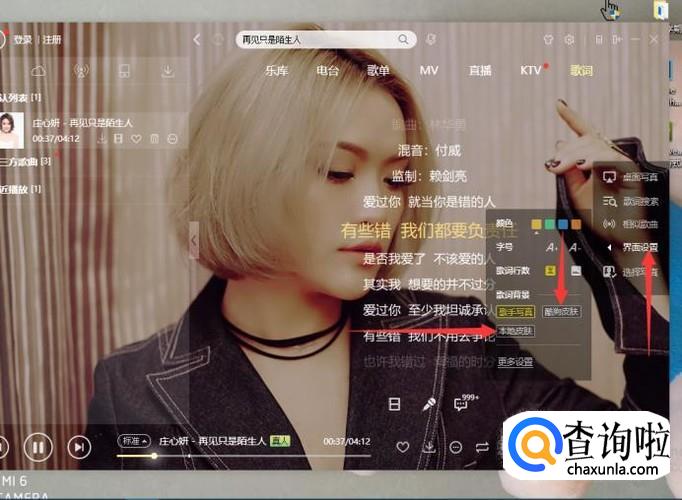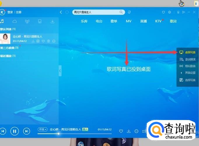 如何将酷狗音乐的歌词投影到桌面上全屏播放