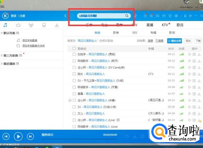 鼠标左键单击上边搜索栏,搜索想要找的歌。