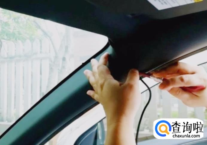 接下来,顺势隐藏连接线并继续安装,掀开副驾驶脚垫、将连接线藏入脚垫处。