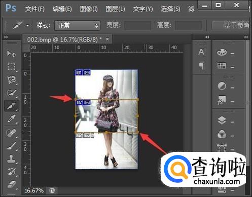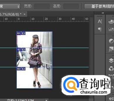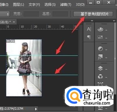 还可以从标尺上拉出参考线,再点击基于参考线的切片,图片上就会自动按照参考线位置进行切片。