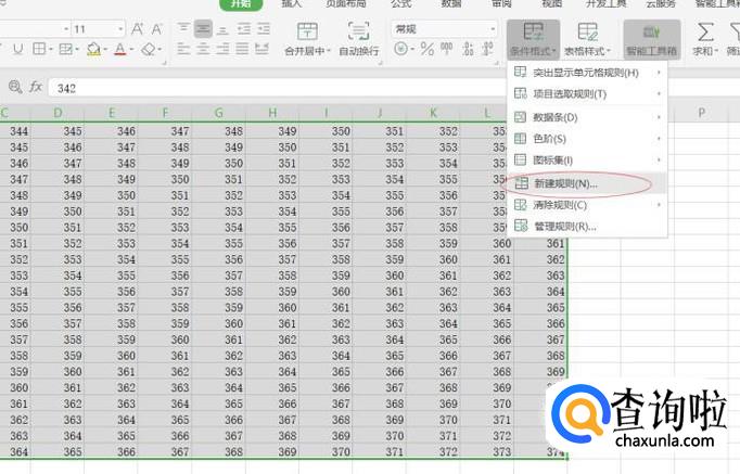 选中需要处理的文件区域,在工具栏中找到条件格式,选择新建规则