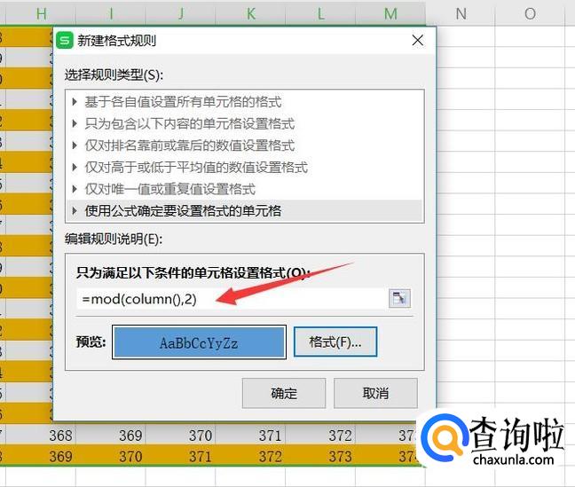 隔列展示与隔行展示大同小异,在规则公式的地方需要输入=mod(column(),2)