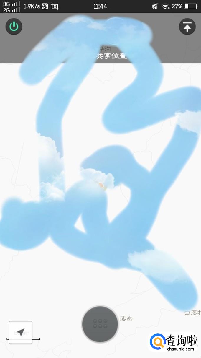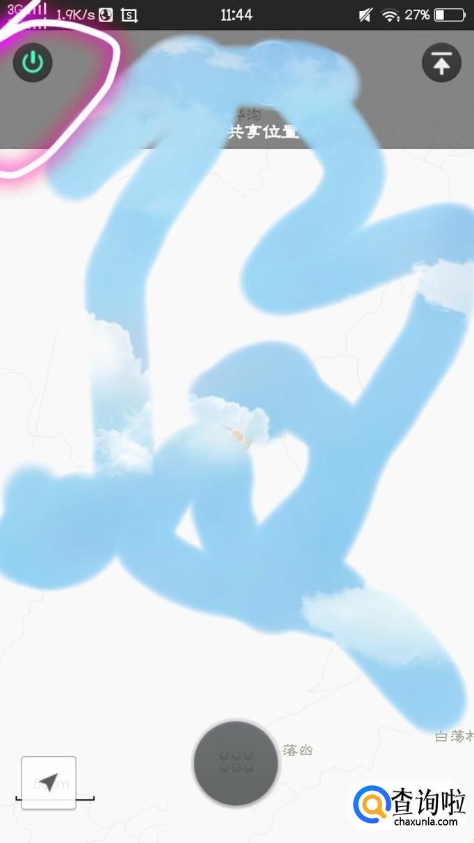 最后,我们点击“共享实时位置”以后便会出现自己的实时位置,蓝点表示自己的位置,橙点便表示好友的实时位置,完成以后,若想结束位置共享,便要点击屏幕左上角的绿点,即可