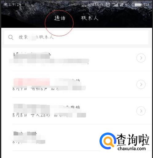 点击进入后,有通话和联系人两列,这里的通话记录默认是按时间的顺序排列的