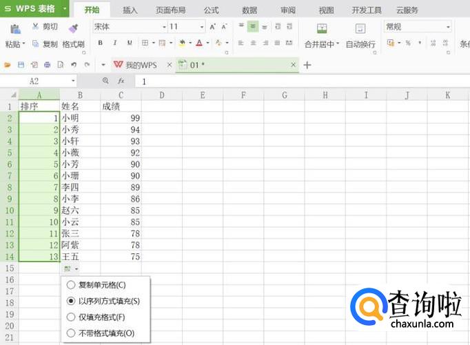 名次那一列以序列方式填充完毕,名次按数字排序完成。
