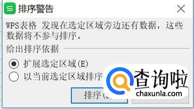 在排序警告对话框中选择“扩展选定区域”,点击“排序”。