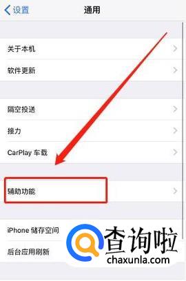 然后在“通用”中,打开“辅助功能”。