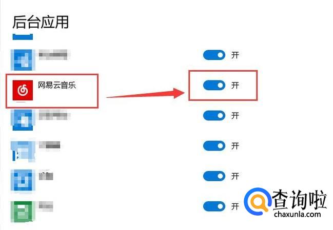 在后台应用界面,把网易云音乐的权限开关打开,如图所示。