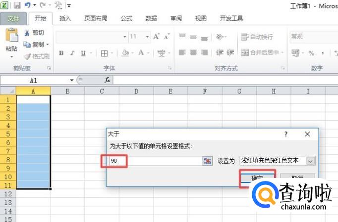 之后我们在我们设置条件格式的单元格中输入两个数字,我们可以看到大于90的单元格就自动变颜色了。