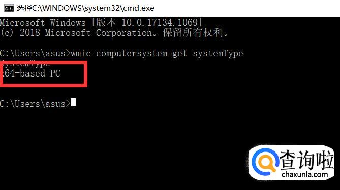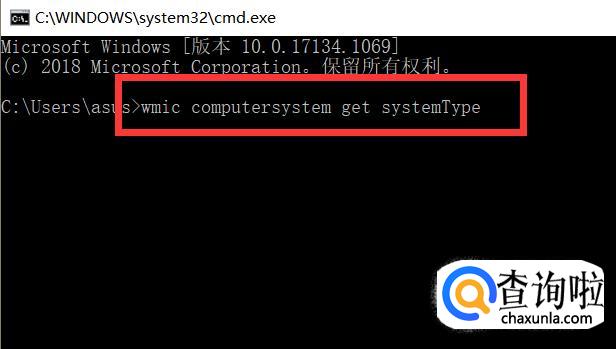 然后在<命令提示符>窗口输入“wmic computersystem get systemType”,再按Enter键。