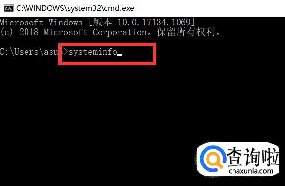 接着在<命令提示符>窗口中,输入<systeminfo>这个系统信息命令,然后按Enter键。