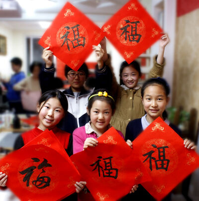 72、欢天喜地度佳节 张灯结彩迎新春 横批:家庭幸福