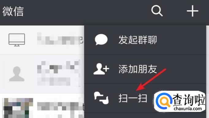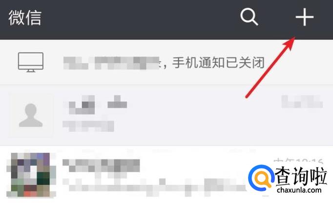 要扫描手机里的二维码图片,我们先打开微信,点击上方的‘+’图标。