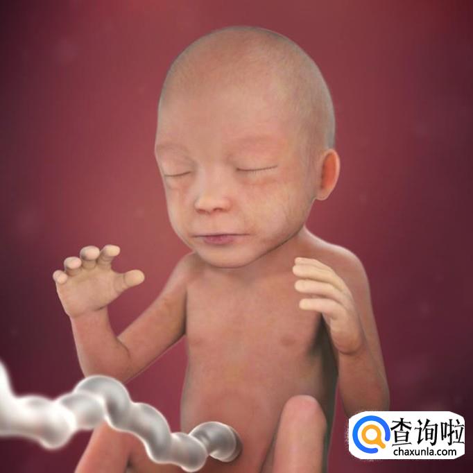 宝宝现在约11英寸(27.94厘米),体重约1磅(约453.59克),和面条瓜大小差不多。眼睑、嘴唇、眉毛越来越清晰。宝宝的眼睛已经形成,但是虹膜还缺少色素。