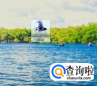 首先在我们的电脑桌面上找到数码照片压缩大师并点击它,如下图所示。