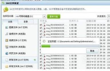 打开360文件恢复工具(在360安全卫士中可以找到)然后选择可移动磁盘(也就是您手机的盘符),点击开始扫描