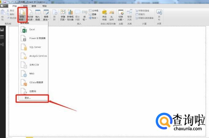 选择工具栏中“开始”界面下的“获取数据”下的小箭头,由于本文使用的方式是从web网页获取数据,所以选择使用“更多”方式打开获取数据的方式。