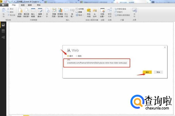 如图,选择“基本”方式,填写你所制定的数据源URL,本文采用的是微软官方提供的开放数据源,(http://www.bankrate.com/finance/retirement/best-places-retire-how-state-ranks.aspx),URL填写完毕后点击“确定”按钮。