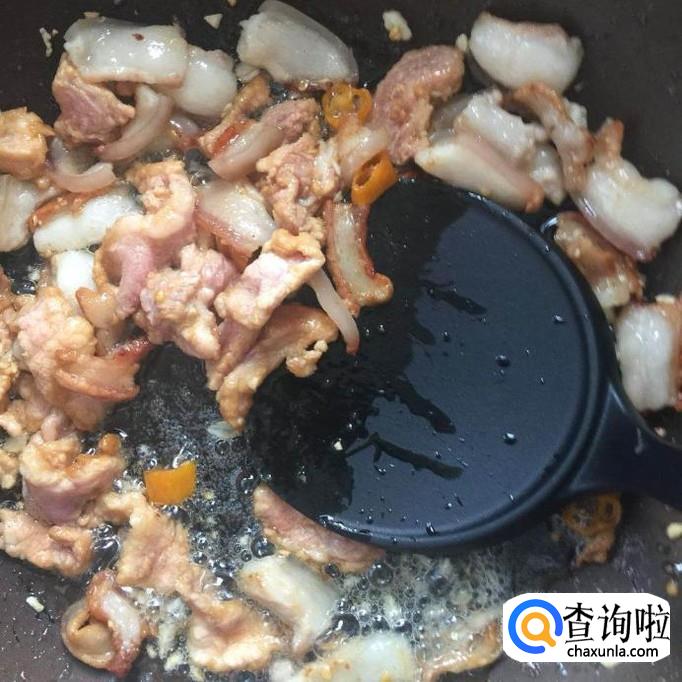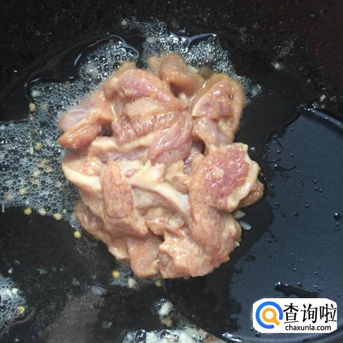 接着把瘦肉倒入锅中翻炒五分钟,起锅备用,如下图所示。