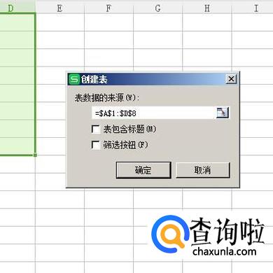 弹出创建表的对话框,点击确定,那么,就插入了一个表格;如图所示