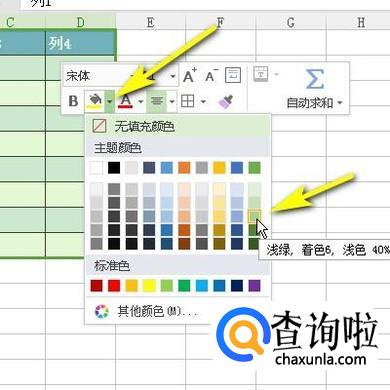 接下来,再给表格添加底色;选中表格,鼠标放在表格上,再右击,自动显示出的工具栏中点击填充下拉按钮,从中选择自己中意的颜色。