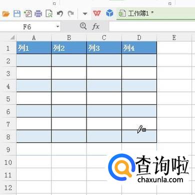 新建WPS表格;进入到操作界面。选中A1:D9这区域单元格