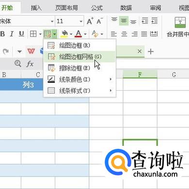 点击开始选项卡,再点绘图边框的下拉按钮,弹出的菜单中再点;绘图边框网格