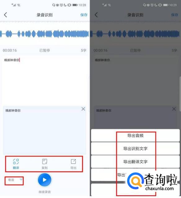 设置完毕后,点击开始录音按钮,工具就会将听到的粤语全部转为文字显示在文本框中了。识别成功后,还可以进行翻译、复制、导出等操作了。